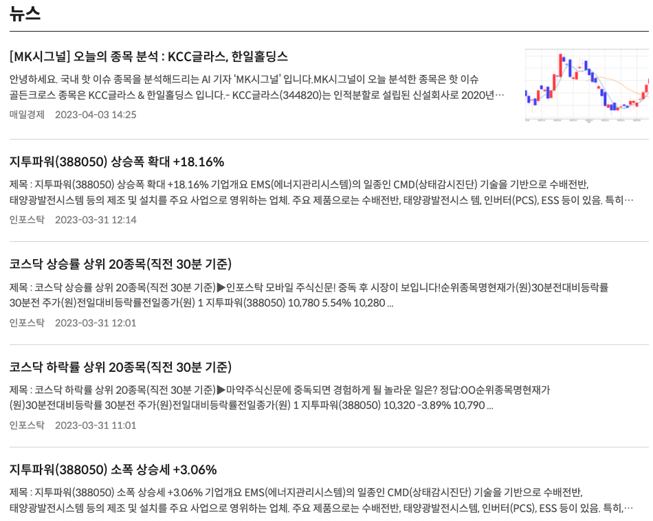 찾아볼 것은 앞으로의 발전가능성을 위해서 최신뉴스, 차트, 그리고 매출이다.